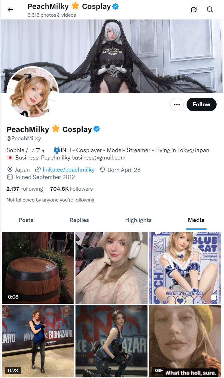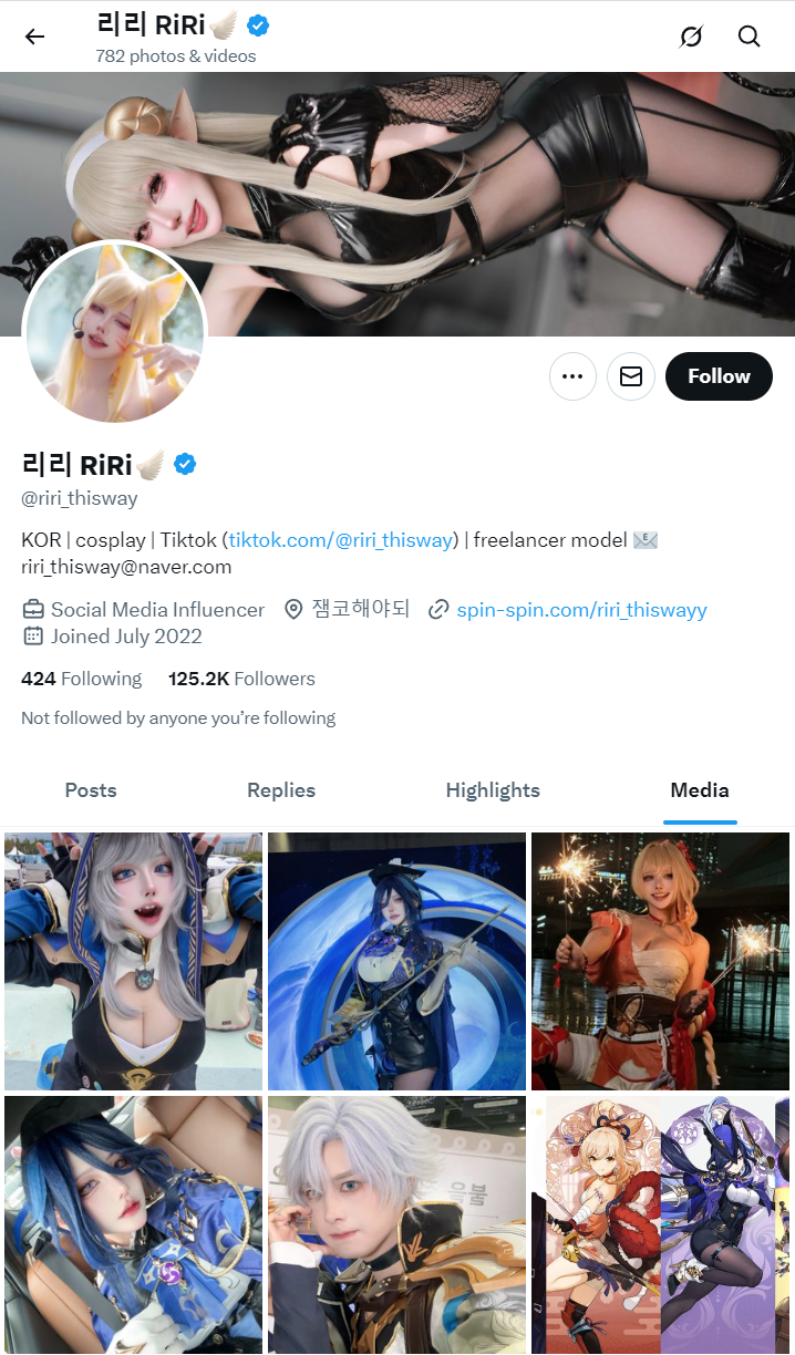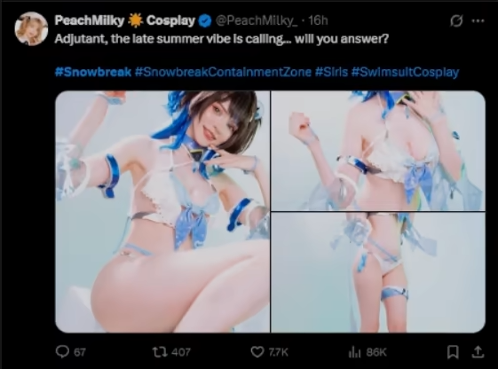 在推特(X)的尘白禁区(国际服)话题上,突然出现大量的职业COSER发布尘白新版本新角色/新时装的COS套图
