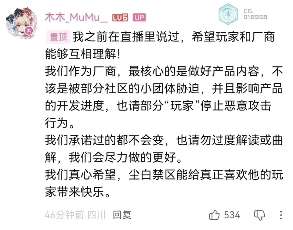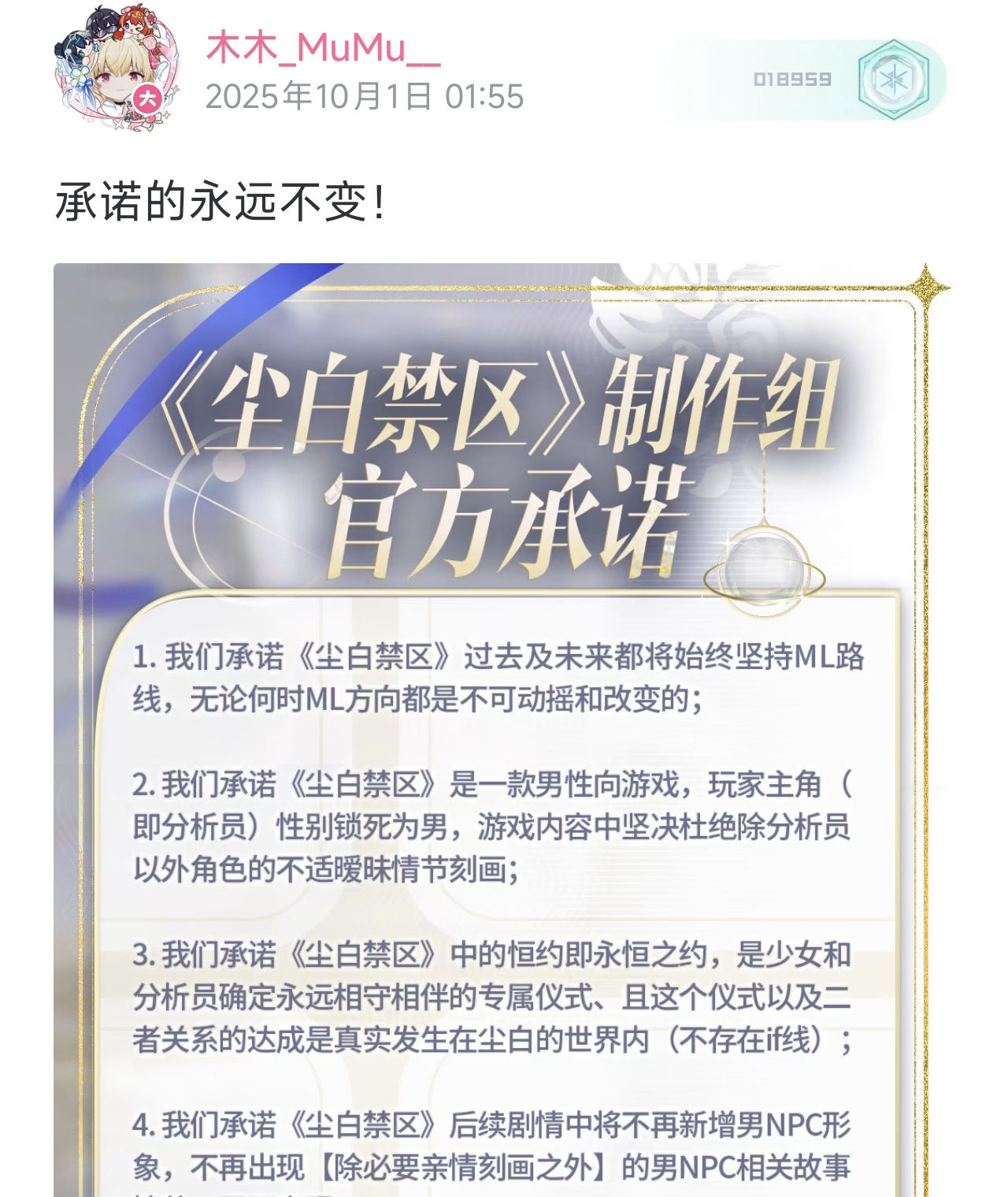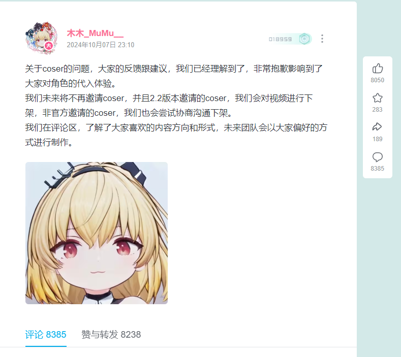2024-10-07 【官方承诺】木木_MuMu__(尘白禁区制作人),关于对尘白禁区Coser的完整承诺