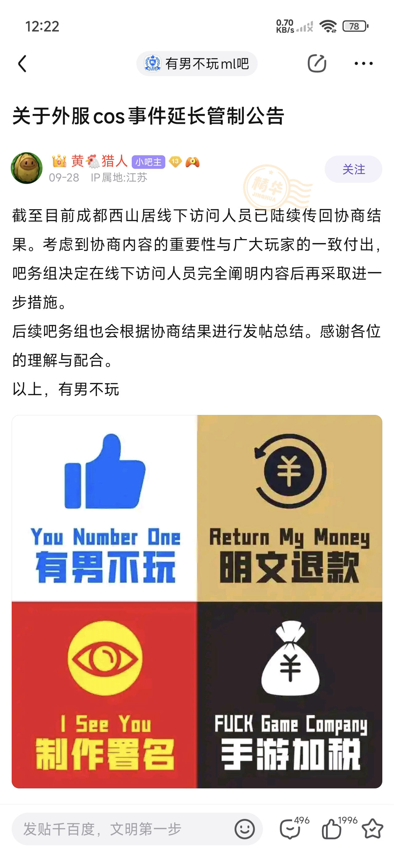 (⚠️空口指控,造谣可能)"极端吧务团体在社区激情对线"⬇️