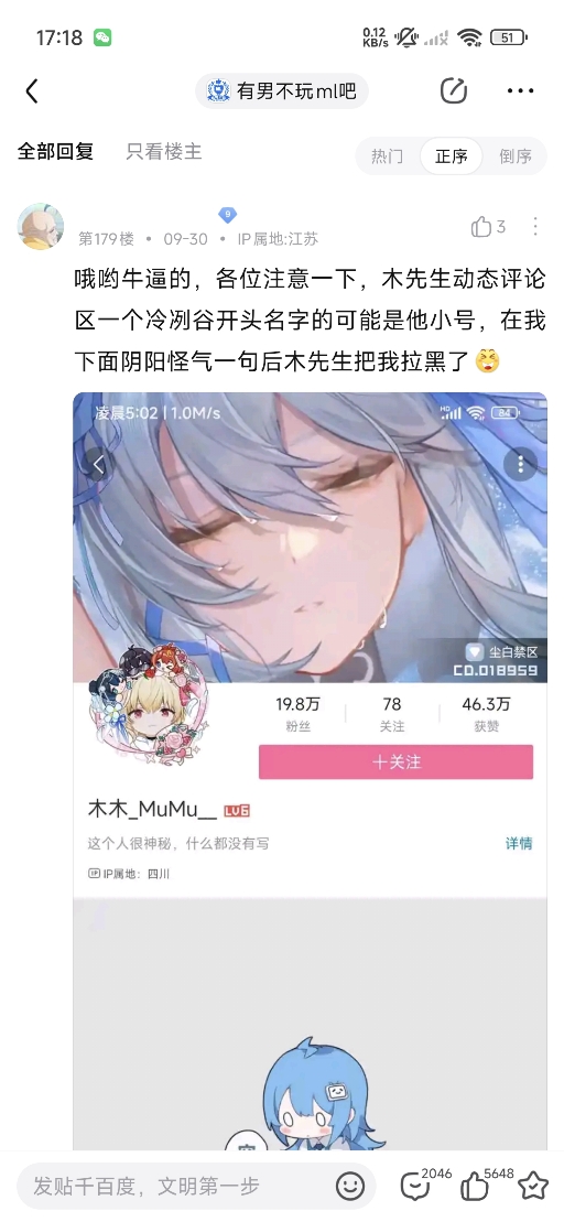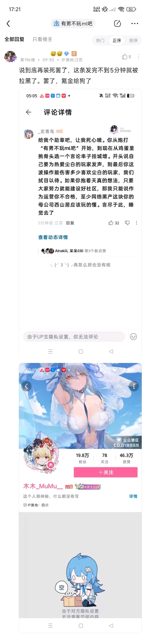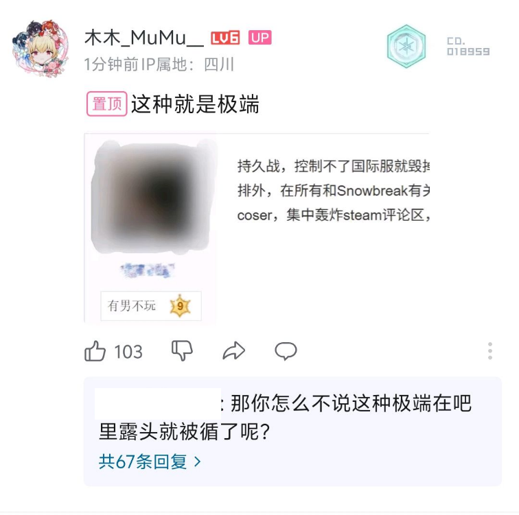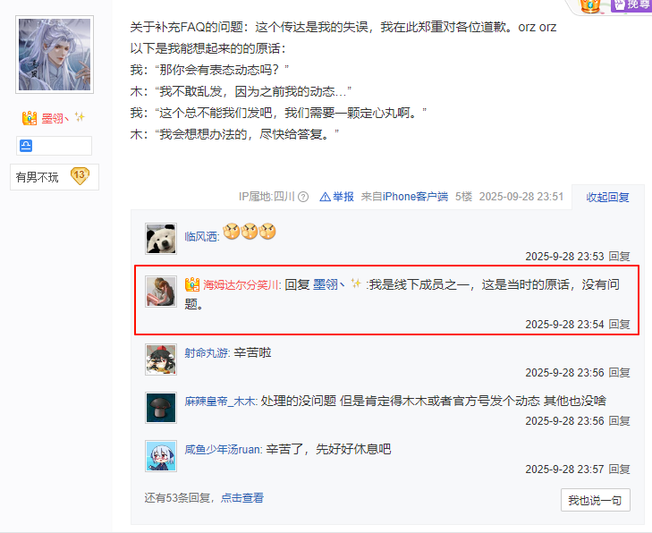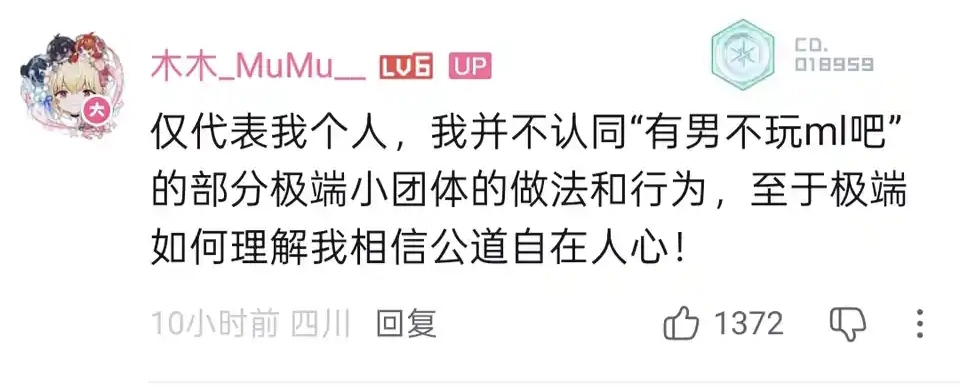 2025年9月30日,木木_MuMu__(尘白禁区官方运营)下场切割有男不玩ml吧"极端小团体"