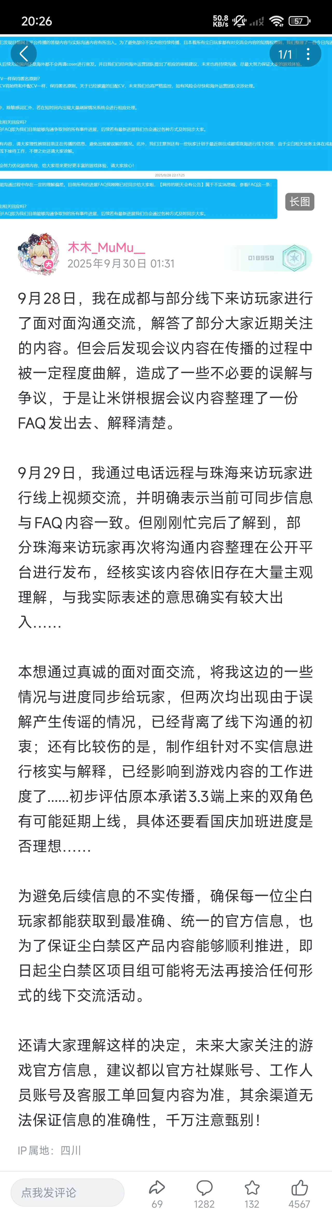 2024-09-29 【官方承诺】木木_MuMu__(尘白禁区制作人),关于对海外Coser管控承诺