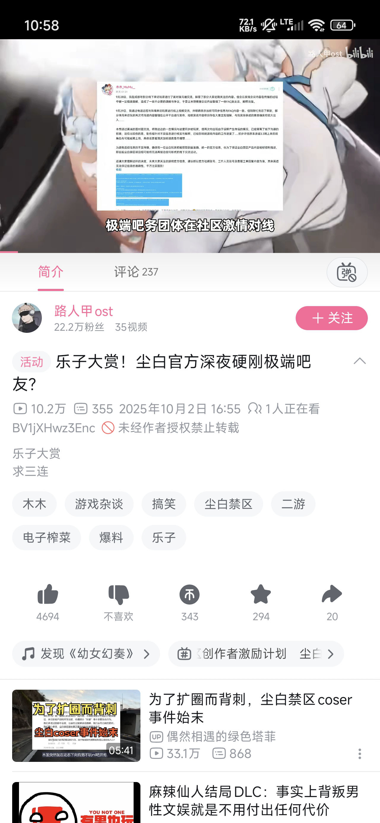 2025-10-02【B站】(营销号洗白白) 乐子大赏!尘白官方深夜硬刚极端吧友? - 路人甲ost(⚠️存在造谣可能)